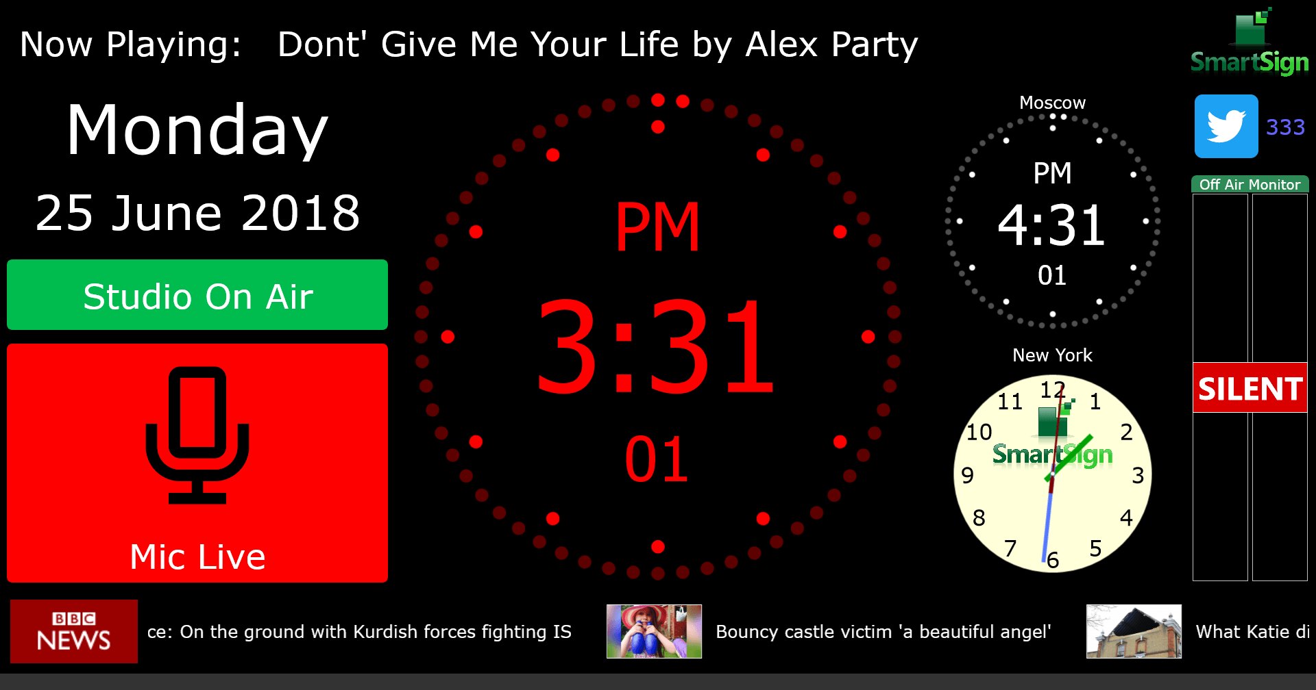 - Audio Monitor - Add multiple 'VU' displays with silence alerts to your SmartSign. Works with our free Audio Monitor software.